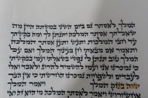 מגילת אסתר 11 שורות ספרדי ישירות מהסופר [ אורח ] אברך   11/12/2025 22:54